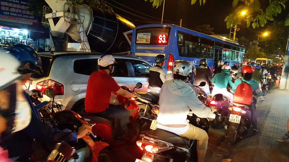Đã gần 20 giờ, tình trạng kẹt xe vẫn chưa có dấu hiệu giảm.