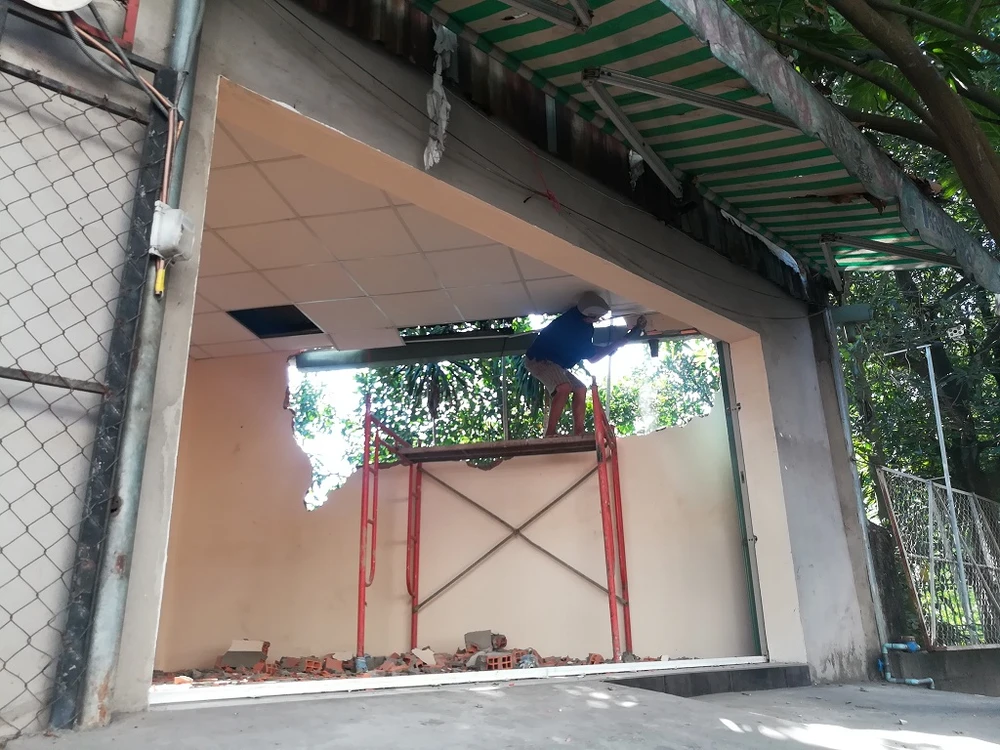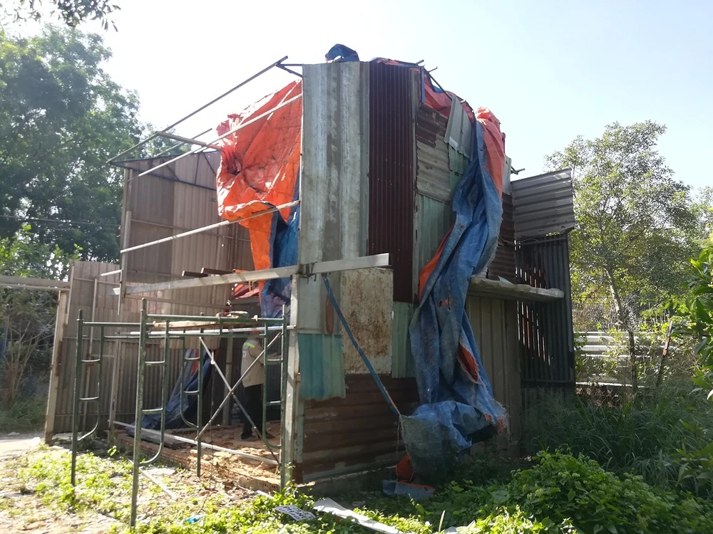 Một công trình nằm kế dãy nhà trọ cũng bị tháo dỡ vì không có giấy phép. Ảnh: THANH TUYỀN