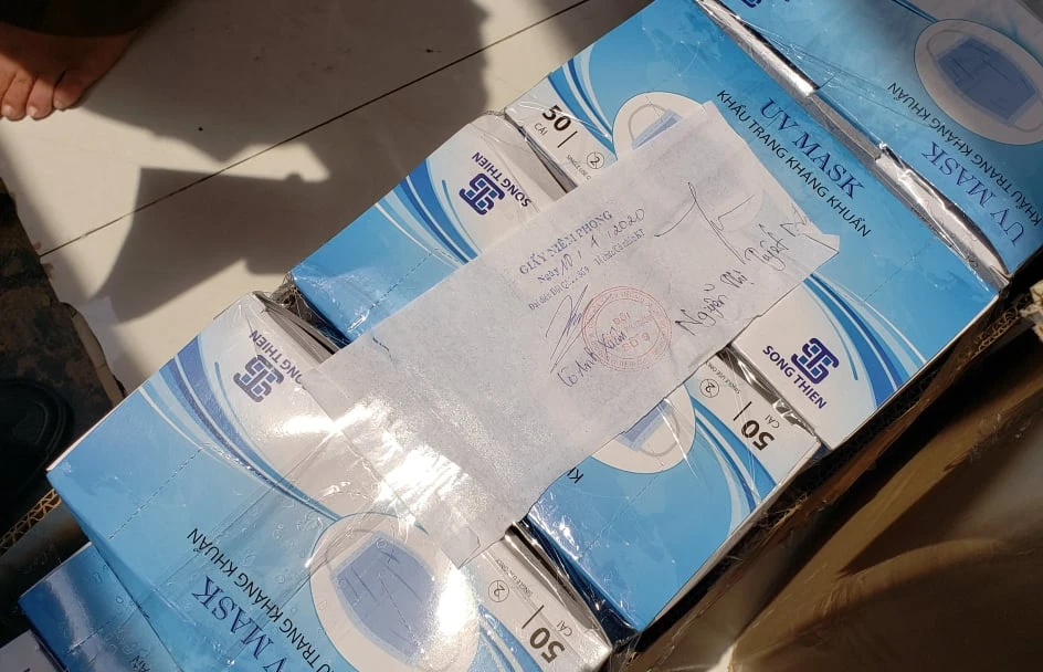 Nhiều hộp khẩu trang được niêm phong để tiếp tục làm rõ. Ảnh: TS