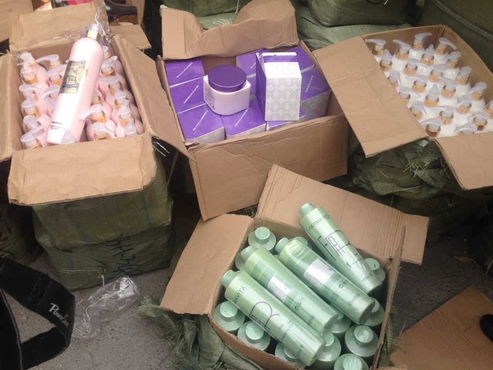Các mặt hàng mỹ phẩm, hương liệu không rõ nguồn gốc bị bắt giữ như: kem bôi da, dầu gội đầu, dầu hấp tóc, kem tẩy da chết, một số trên vỏ ngoài có chữ Trung Quốc hoặc tiếng Anh, ghi sản phẩm của Đức. Đặc biệt, có nhiều thùng lớn đựng hương liệu màu nâu vàng, có mùi thơm nhưng không có nhãn mác...