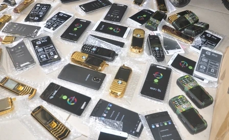 Qua kiểm tra bên trong phát hiện lô hàng gồm: 344 chiếc điện thoại di động các loại như: LG, Vertu, Nokia, Land Rover… Hầu hết số điện thoại này đều có xuất xứ từ Trung Quốc.