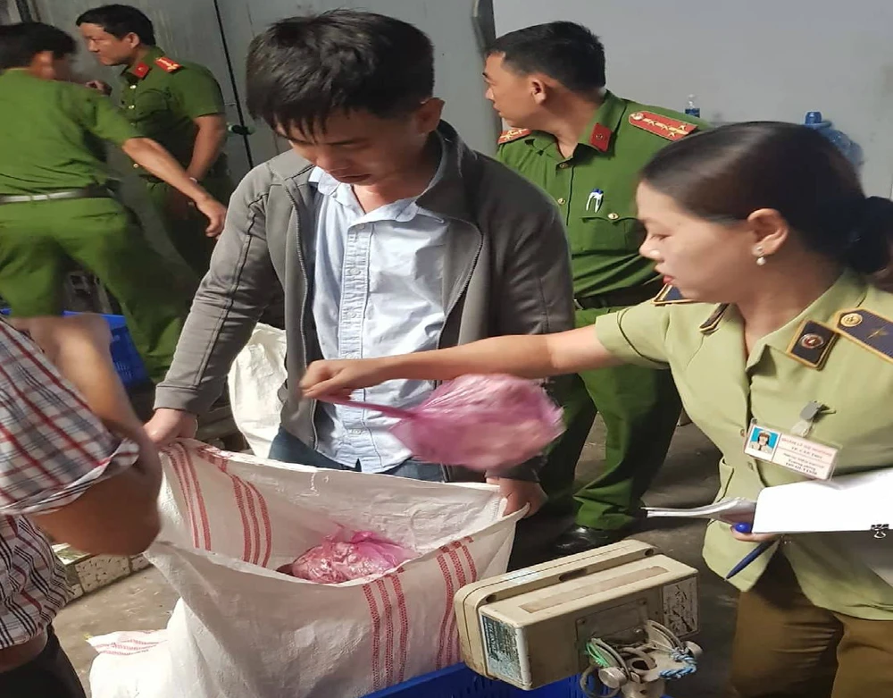 Sáng cùng ngày, Phòng Cảnh sát môi trường phát hiện mô tô biển số 65B1-754.95 vận chuyển thực phẩm đông lạnh đi tiêu thụ nhưng không có hóa đơn, chứng từ chứng minh nguồn gốc, xuất xứ. Lực lượng công an đã phối hợp với Chi cục Quản lý thị trường kiểm tra cơ sở Hồng Thắm ở 280A KV Yên Trung, phường Lê Bình, quận Cái Răng, TP Cần Thơ.