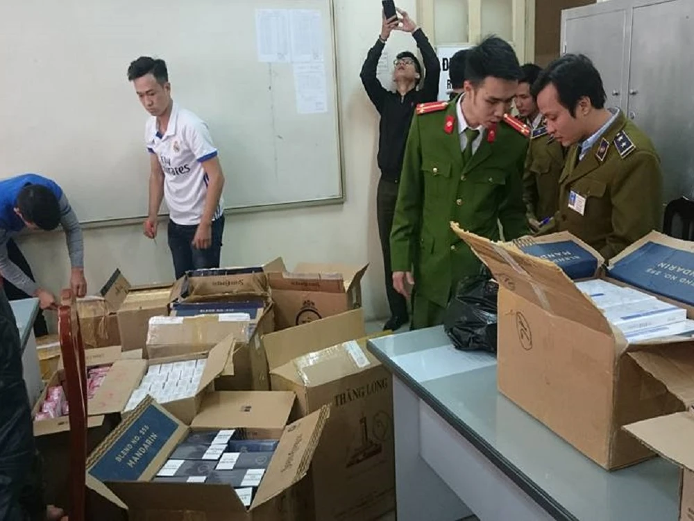 Vào thời điểm trên, tại phường Mỹ Đình 2 (Nam Từ Liêm, Hà Nội), lực lượng chức năng phát hiện đối tượng Hà Thanh Hoàng (18 tuổi, quê Phú Thọ, nhân viên giao hàng) đang có hành vi buôn bán thuốc lá nhập lậu. Tổ công tác đã thu giữ hơn 7.000 bao thuốc lá nhập lậu tại cửa hàng trên.