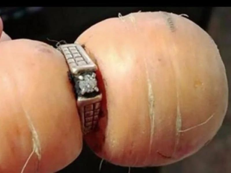Chiếc nhẫn kỷ niệm được tìm thấy khi đang cuộn quanh một củ cà rốt. Ảnh: CBC