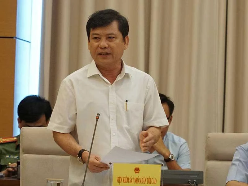 Viện trưởng VKSND Tối cao Lê Minh Trí đang nêu ý kiến tại phiên họp. Ảnh: Đ.Minh