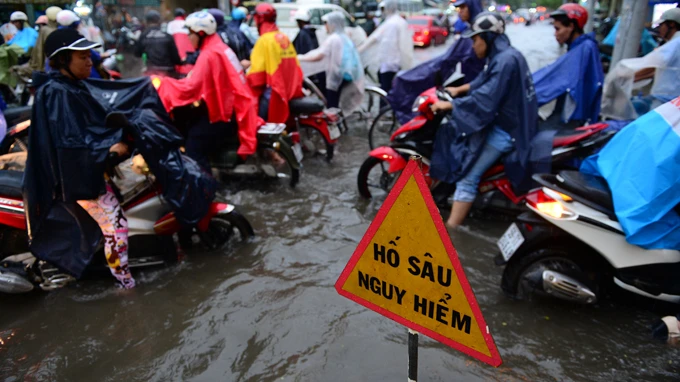 Tình trạng ngập nước vẫn diễn ra nhiều nơi trong khi lãnh đạo Công ty thoát nước đô thị nhận lương khủng khiến nhiều người bức xúc - Ảnh Thuận Thắng