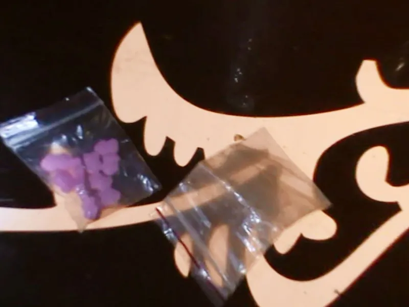 Cảnh sát phát hiện ở năm bàn tại đây có nhiều túi nylon chứa các viên nén màu vàng, tinh thể không màu (sau đó được xác định là ma túy đá) và hàng chục viên nén màu hồng (thuốc lắc).