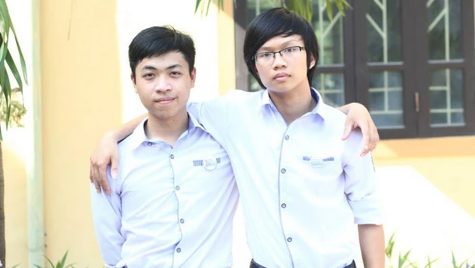 Phạm Đức Toàn (đeo kính) và bạn thân cùng lớp (Ảnh do nhân vật cung cấp)