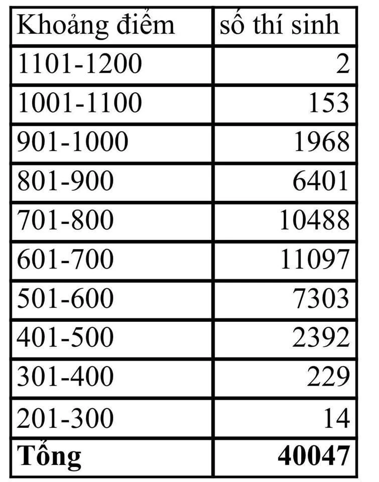 Theo TS Chính đánh giá, phổ điểm có dạng phân bố chuẩn, trải rộng từ 217 điểm đến 1108 điểm, thể hiện tính phân loại cao của đề thi, đảm bảo tin cậy, tạo thuận lợi cho công tác xét tuyển.