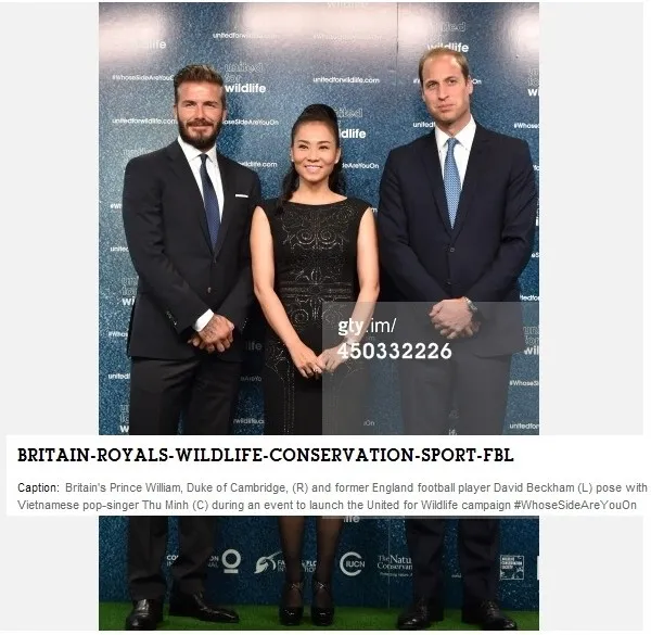 Hình ảnh Thu Minh, David Beckham, hoàng tử Harry trên báo chí thế giới