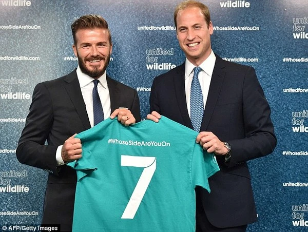David Beckham và hoàng tử Harry bên chiếc áo thể hiện sự ủng hộ cho chiến dịch #WhoseSideAreYouOn