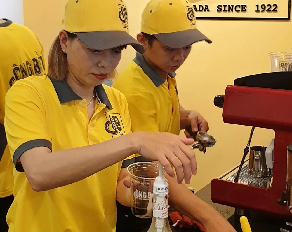Cô chủ nhò Kiều Trinh tự tay pha cà phê cho khách và nhờ vả "nhân viên phục vụ" Văn Toàn, Tuấn Anh bưng bê suốt cả buổi sáng. Ảnh: NHƯ NGỌC.