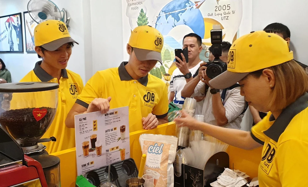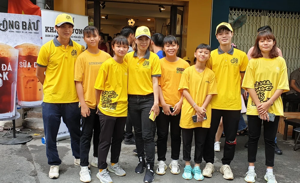 Đông đảo bạn trẻ yêu bóng đá nghe tin cựu tuyển thủ Đặng Thị Kiều Trinh mở quán bán cà phê đã rủ rê nhau đến ủng hộ. Buổi khai trương còn có sự xuất hiện của bầu Hải NutiFood, các tuyển thủ Tuấn Anh, Văn Toàn cùng học trò đội U-14 nữ TP.HCM đến chúc mừng “cô gái vàng” một thời của tuyển nữ trở thành bà chủ nhỏ.