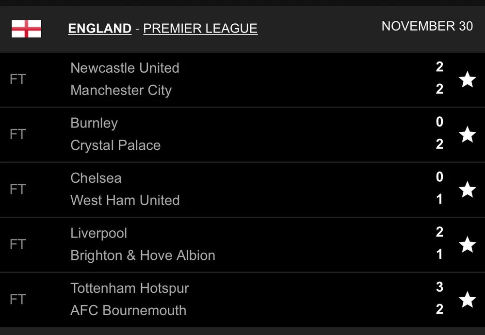 Cùng vòng đấu, Chelsea gây sốc khi để thua West Ham với tỷ số 0-1 ngay trên sân nhà, trong khi đó Tottenham của tân HLV Jose Mourinho giành chiến thắng với tỷ số 3-2 trước Bournemouth.
