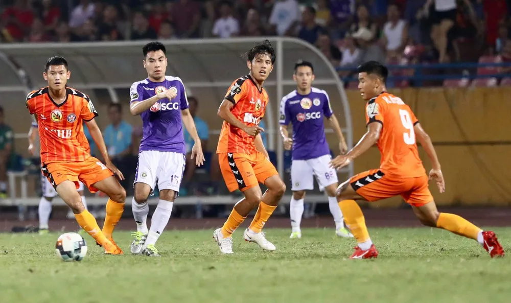 Siêu dự bị Schmitt vừa vào sân thay người rút ngắn 2-3 danh dự cho SHB Đà Nẵng chứ không thể cùng đồng đội bắt kịp Hà Nội có dàn cầu thủ và lối chơi chất lượng hơn hẳn.