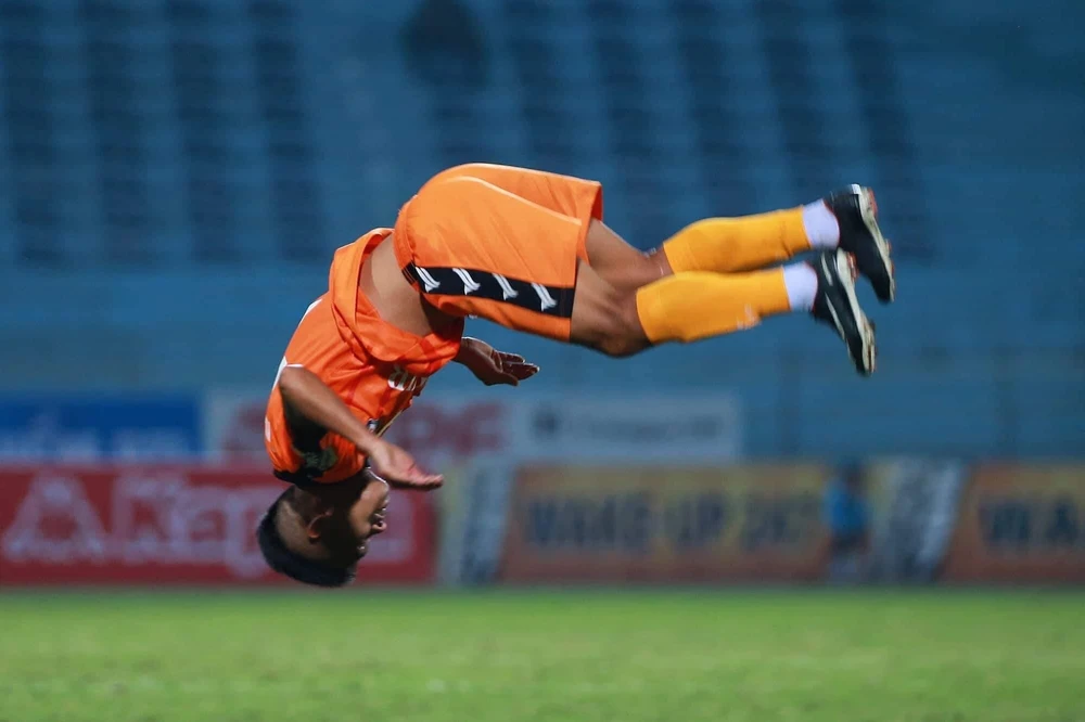 Tác giả cú dứt điểm gỡ hòa 1-1 là Thanh Hải nhảy santo điệu nghệ ăn mừng bàn thắng quý.
