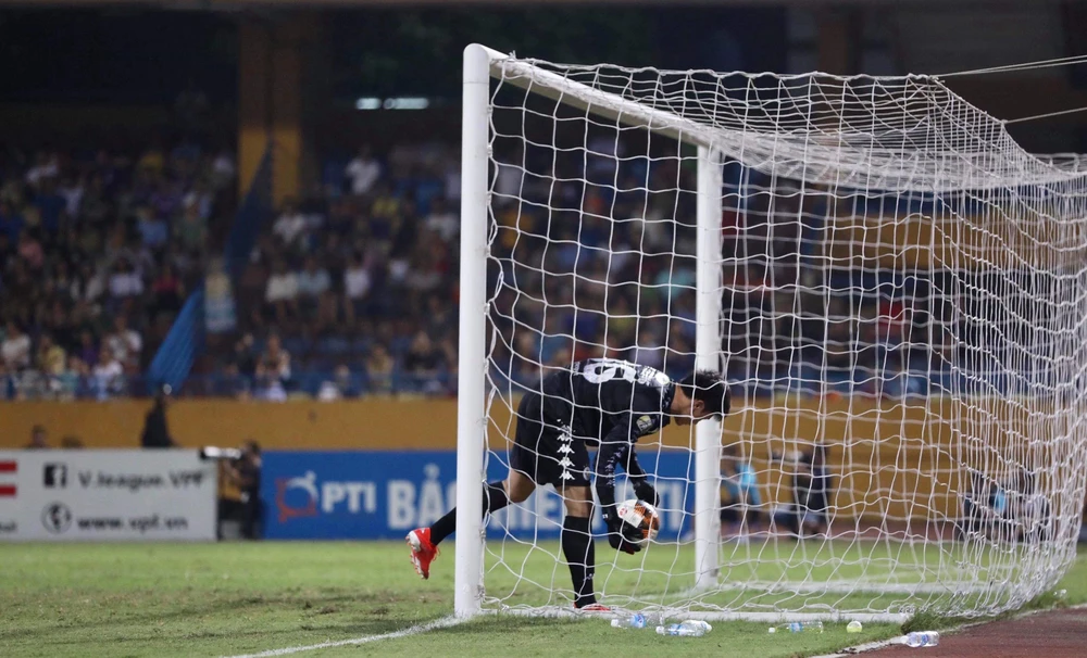 Thủ môn Bùi Tiến Dũng để lọt lưới hai bàn nhưng may mà đồng đội của anh đã ghi ba bàn. Ảnh: NGỌC DUNG