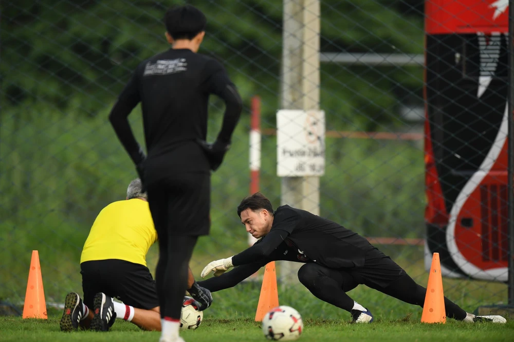 Thủ môn Văn Lâm tích cực tập luyện, cạnh tranh vị trí bắt chính trong khung thành CLB Muanghtong United. ẢN: MUTD