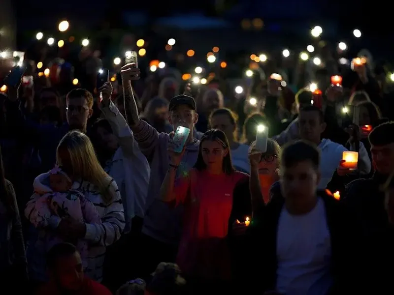 Người dân Plymouth (Anh) hôm 13-8 cầu nguyện cho các nạn nhân vụ xả súng tối 12-8. Ảnh: PA