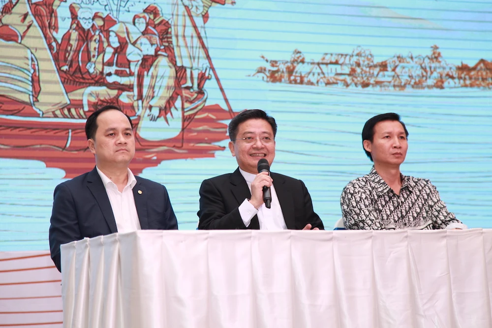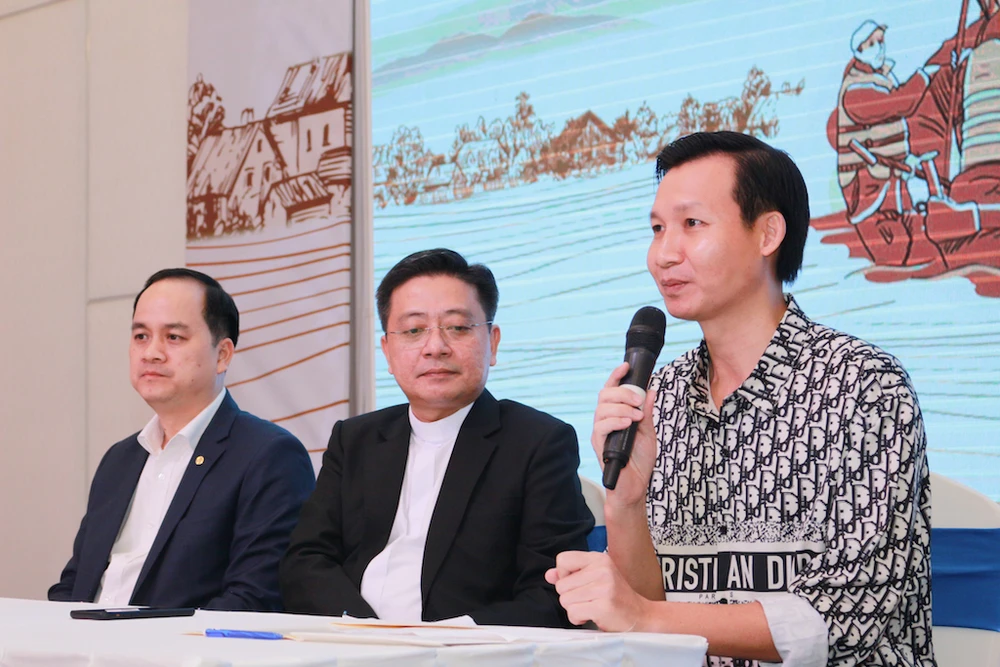 Linh mục Giuse Đào Nguyên Vũ (giữa), Chánh Văn phòng Hội đồng Giám mục Việt Nam, chia sẻ về chương trình tái thiết miền Trung. Ảnh: BTC cung cấp