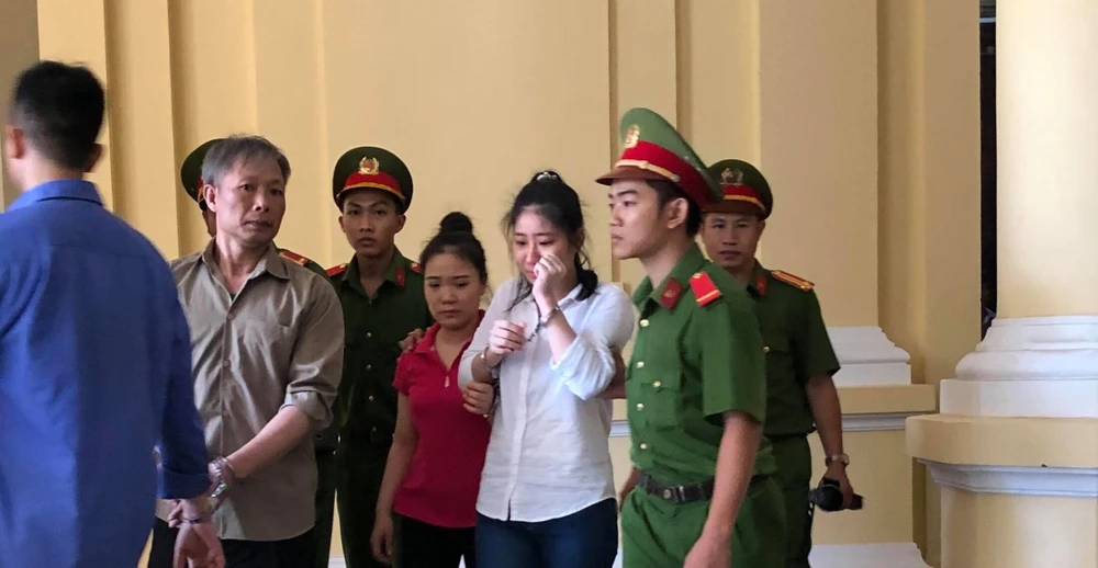 Bị cáo Nhung (áo trắng) khóc