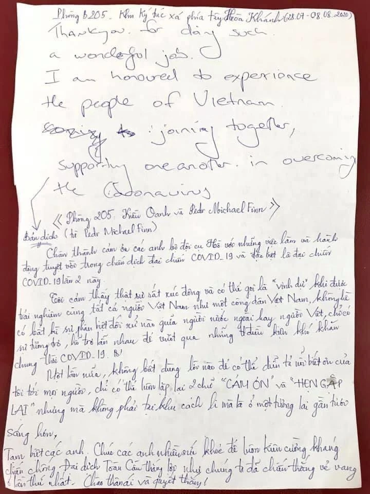 Xin cảm ơn Đảng và Nhà nước đã chăm lo cho cuộc sống của chúng con trong thời gian 14 ngày cách ly vừa qua. Cơm ăn, nước uống, tiện nghi đầy đủ. Cảm ơn vì được sinh ra là một người con của đất Việt – một dòng máu yêu thương đùm bọc lẫn nhau.