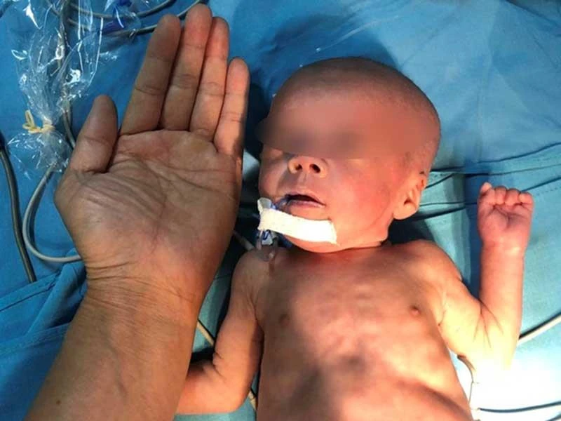 Lồng ngực bé gái chỉ gấp đôi cổ tay người lớn. Ảnh: BVCC