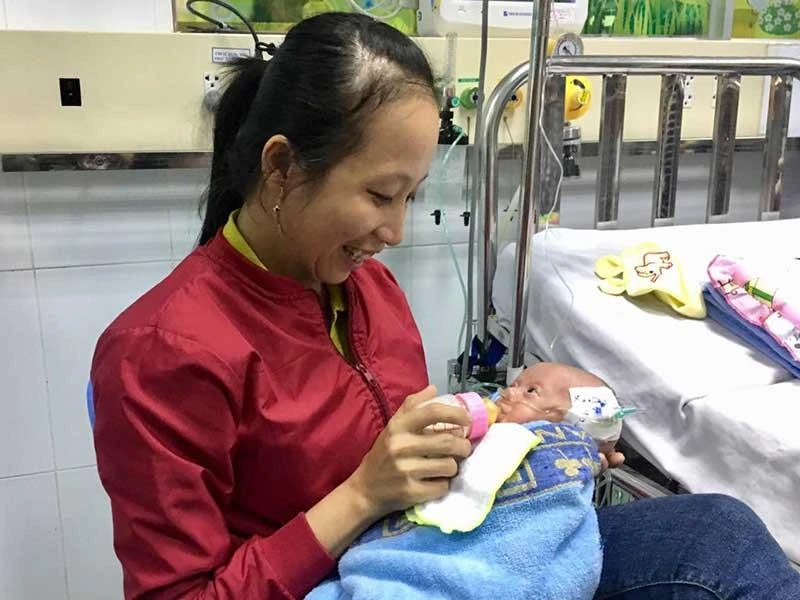Tại Phòng săn sóc đặc biệt, Khoa tim mạch, BV Nhi đồng 1 (TP.HCM), ở một góc phòng, người phụ nữ trẻ đang chăm chú cho một bé gái bú bình sữa. Khi bình sữa sắp cạn, bé gái nhăn mặt tỏ ý không muốn bú nữa, xem chừng đã no.