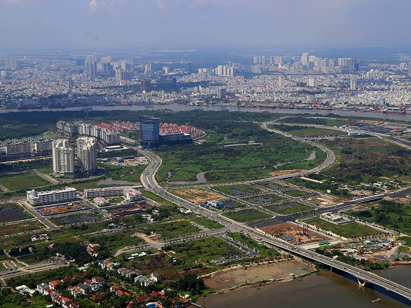 Khu đô thị Thủ Thiêm nhìn từ trên cao. Ảnh: HOÀNG GIANG