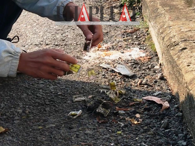 Sau khi các xe bồn rời đi, dưới đất là các niêm chì bị vứt lại. Ảnh: H.HIẾU
