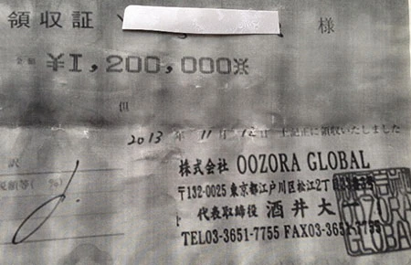 Biên lai thu tiền trực tiếp của Công ty Oozora Global. Ảnh: P.ĐIỀN