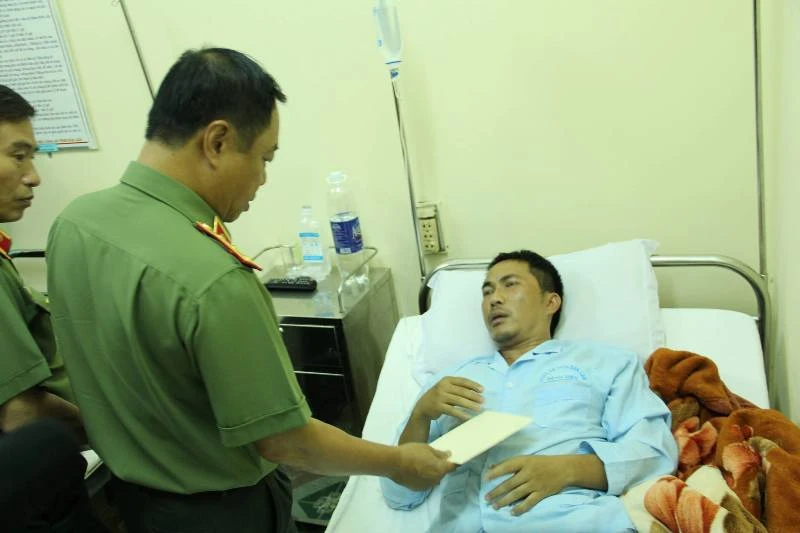 Thượng tướng Phạm Dũng - Thứ trưởng Bộ Công an thăm hỏi, động viên chiến sĩ bị thương đang cấp cứu tại BV Đa khoa tỉnh Đắk Lắk