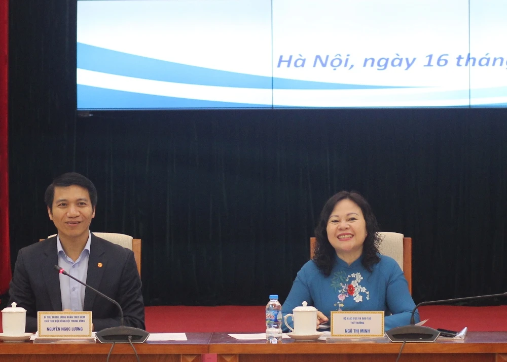 Thứ trưởng Bộ GD&ĐT Ngô Thị Minh (phải) tại buổi gặp gỡ. Ảnh: V.T