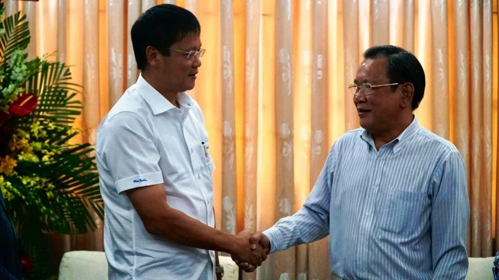 Thứ trưởng Lê Hải An (bìa trái) và ông Mai Ngọc Phước, Tổng Biên tập báo Pháp Luật TP.HCM. Ảnh: QUANG DUY