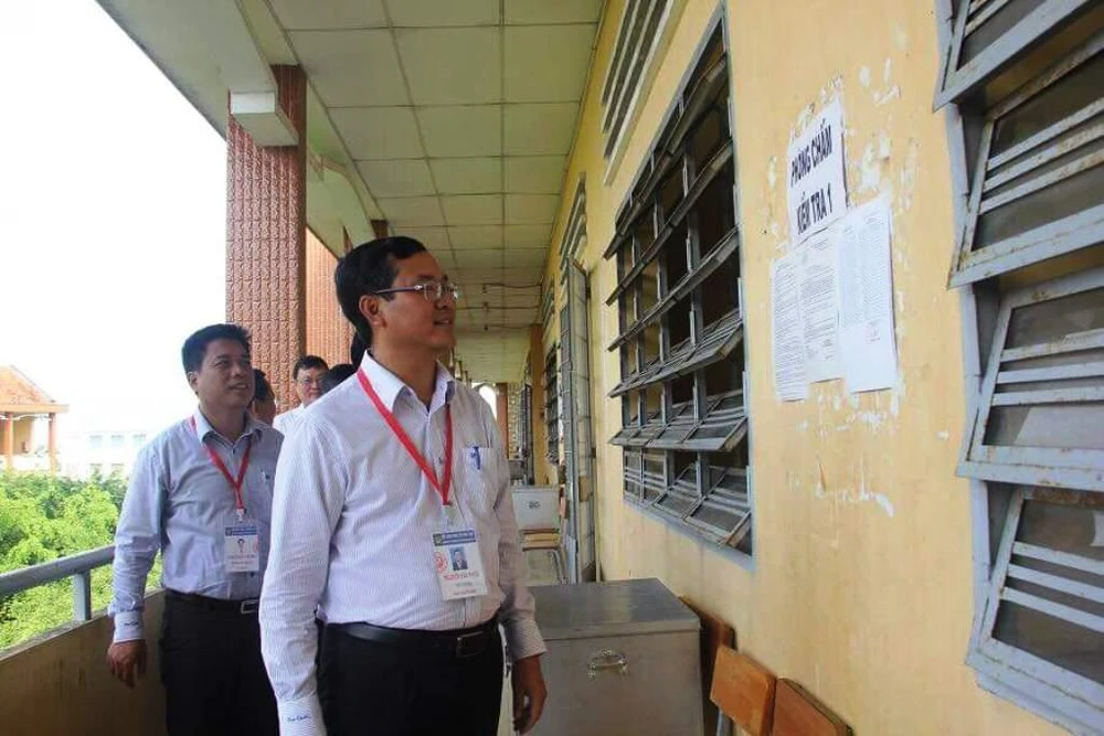Sáng 1-7, Thứ trưởng Nguyễn Văn Phúc cùng với đoàn công tác của Bộ GD&ĐT đã tới kiểm tra công tác chấm thi tại tỉnh Long An.