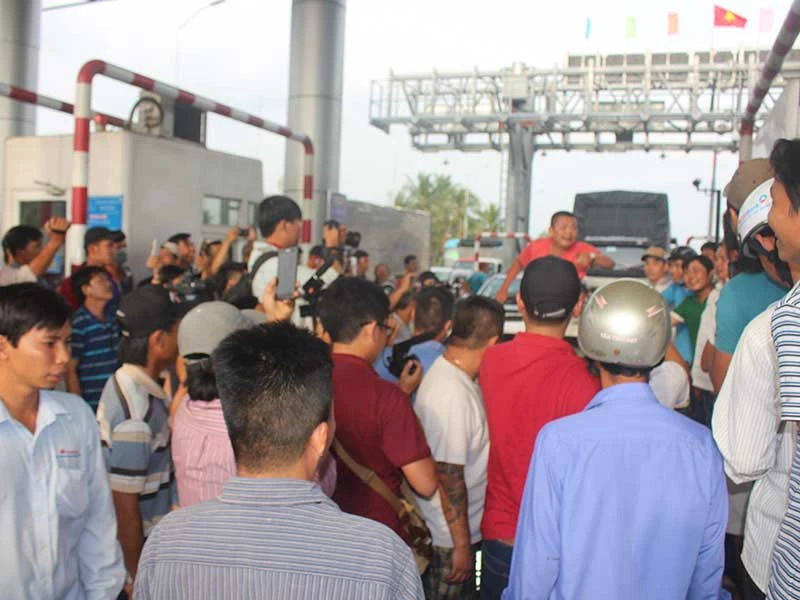 Tài xế phản đối thu phí BOT Cai Lậy tháng 11-2018. Ảnh: ĐÔNG HÀ