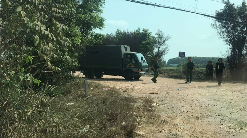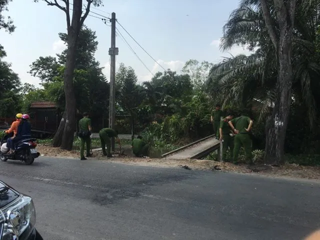 Trên tỉnh lộ 15 đoạn gần cầu Bến Nẩy, nhiều công an đang túc trực, khám nghiệm hiện trường. Khu vực xuất hiện xe bọc thép di chuyển về hướng nghi có kẻ sát nhân lẩn trốn.
