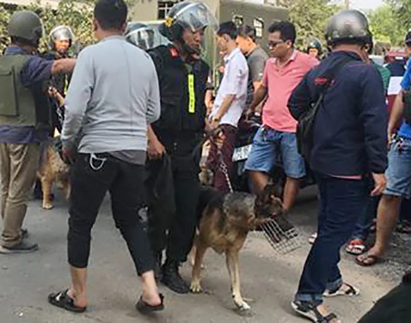 Tại khu vực này có rất đông cảnh sát, cảnh sát cơ động trang bị vũ khí và nhiều xe chuyên dụng đang phong tỏa.