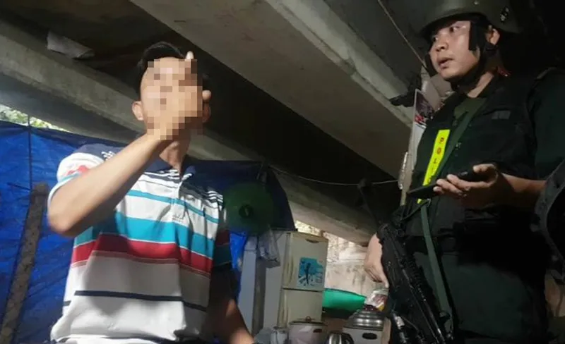 Chiều tối 30-1, một nhóm CSCĐ đưa hình Tuấn cho một người đàn ông đang làm công trình ở chân cầu ông Chương (huyện Củ Chi) nhận diện.