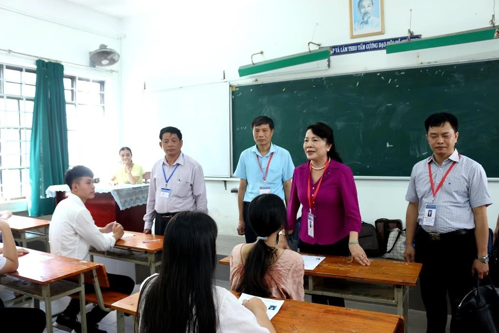 Chiều 24-6, bà Nguyễn Thị Nghĩa, Thứ trưởng Bộ GD&ĐT, đã đến thăm và kiểm tra công tác chuẩn bị cho kỳ thi THPT quốc gia 2019 tại điểm thi Trường THPT Phan Châu Trinh, TP Đà Nẵng.