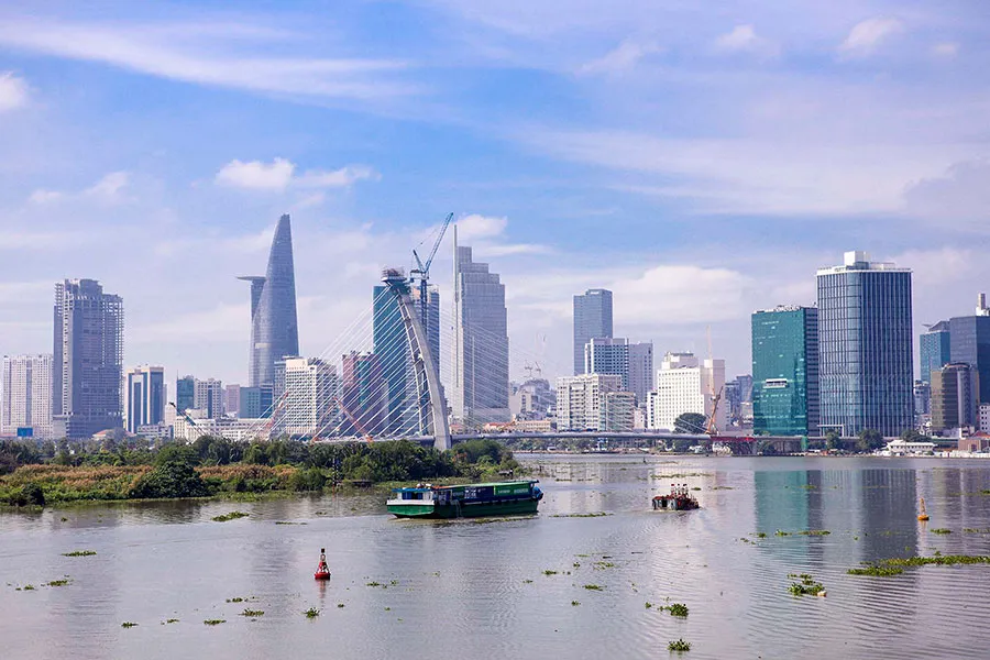 Công trình cầu Thủ Thiêm 2 là một trong những dự án được tiếp tục thi công khi trong suốt thời gian TP.HCM siết chặt giãn cách xã hội để phòng chống dịch COVID-19. Ảnh: NGUYỆT NHI