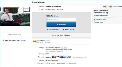 Mẫu quảng cáo rao bán thủ tướng Anh David Cameron trên trang eBay. Ảnh: RT