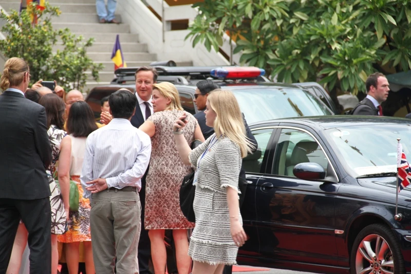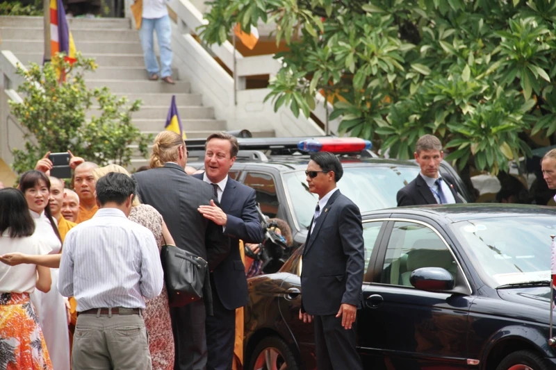 Đoàn xe khoảng 10 chiếc đã đưa Thủ tướng Anh đến chùa Vĩnh Nghiêm vào đúng 12 giờ 40 phút trưa ngày 30-7, cùng với sự hộ tống của các vệ sĩ và lực lượng chức năng của Việt Nam.
