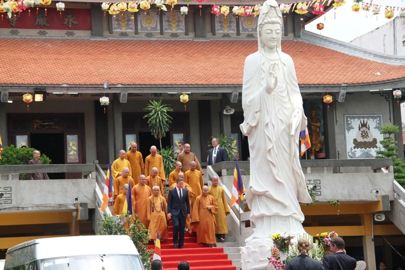Trong thời gian đến thăm chùa Vĩnh Nghiêm, Thủ tướng Anh đã thực hiện một số nghi lễ Phật giáo và đàm đạo với sư trụ trì chùa Vĩnh Nghiêm.