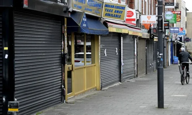 Các cửa hàng ở South Harrow (London) đóng cửa. Ảnh: The Guardian