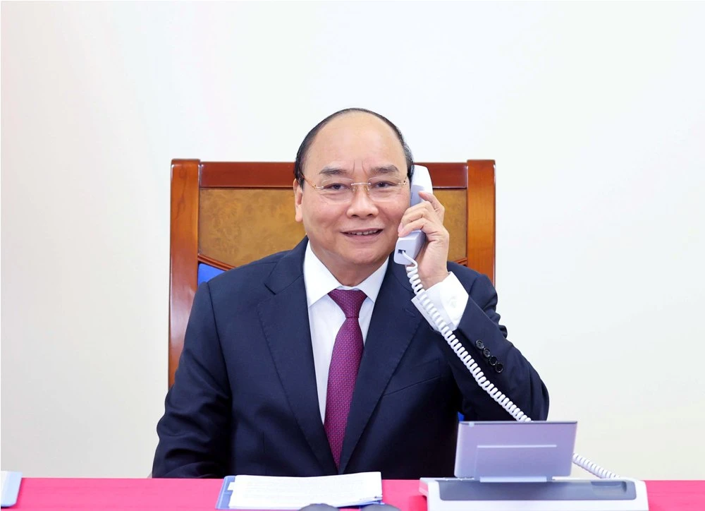 Thủ tướng Nguyễn Xuân Phúc tại cuộc điện đàm. Ảnh: VT