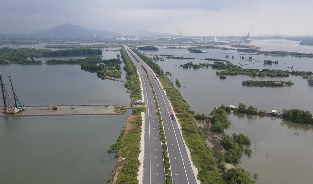 Thúc đẩy đầu tư các dự án về cơ sở hạ tầng phục vụ cho sự phát triển kinh tế toàn vùng (Ảnh đường liên cảng gần cầu Phước An nối Bà Rịa-Vũng Tàu với Đồng Nai):TK