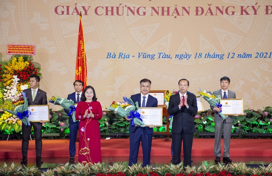 Tỉnh Bà Rịa- Vũng Tàu trao quyết định chủ trương đầu tư, giấy chứng nhận đăng ký đầu tư cho tám dự án-Ảnh:MT