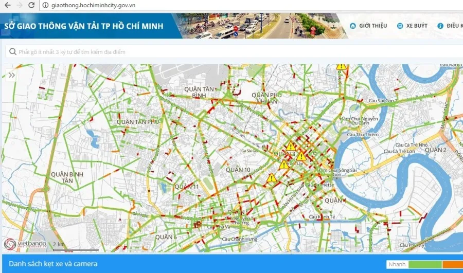 Khoảng 13 giờ hôm nay, dù nhiều người đã về quê ăn Tết song ở TP.HCM vẫn có hàng loạt những nơi ùn ứ nghiêm trọng (màu đỏ tươi hoặc đỏ đậm). Ảnh chụp màn hình Cổng thông tin giao thông TP.HCM. Ảnh: MP
