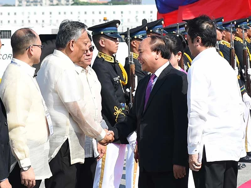 Đại diện chính phủ Philippines đón Thủ tướng Nguyễn Xuân Phúc và đoàn Việt Nam. Ảnh: QUANG HIẾU